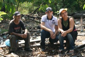 Após recusar uma proposta rebaixada de valores que não contemplavam as principais plantações do lote, a família de Maria das Graças Militão e Sebastião Pereira foi expulsa de suas terras. O casal, que tem quatro filhos, era dono do lote há 8 anos. “Quando chegamos aqui, era só mato”, conta Sebastião. “Aí eu e meu filho abrimos tudo e começamos a plantar, a montar o barraco na beira do rio”, continua. Na época, seu filho Jefferson tinha 13 anos. E do mato surgiram 16 mil pés de cacau, 50 mil de açaí, 24 mil de banana, além de milhares de pés de mamão, abacaxi, macaxeira e diversas outras culturas.