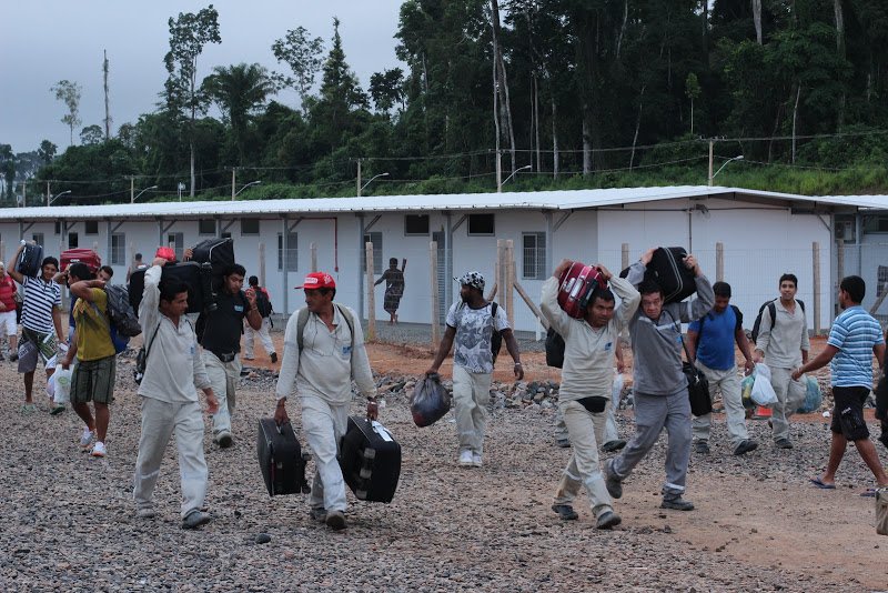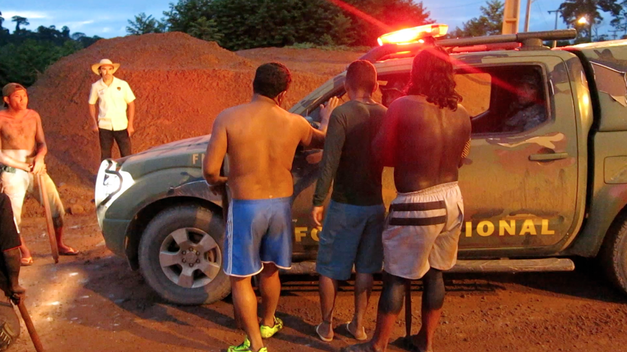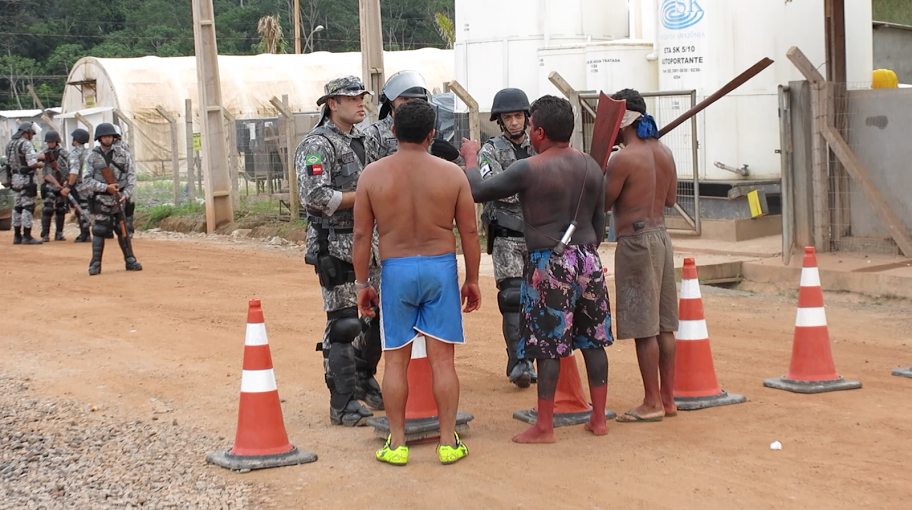 A ação começou as 4 h da manhã com o trancamento da estrada de acesso ao canteiro, mas um veículo, que conseguiu furar o bloqueio, acionou a Força Nacional de Segurança, que se deslocou para o local e tentou impedir a entrada dos manifestantes na área da obra, exigindo que fosse destacado um porta-voz para negociar as reivindicações. Como não houve acordo quanto a esta demanda, o grupo todo resolveu entrar no canteiro e seguiu até os alojamentos, solicitando que os trabalhadores deixassem as instalações.