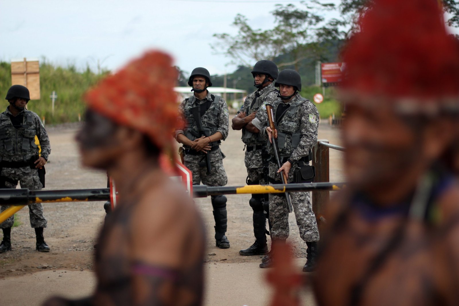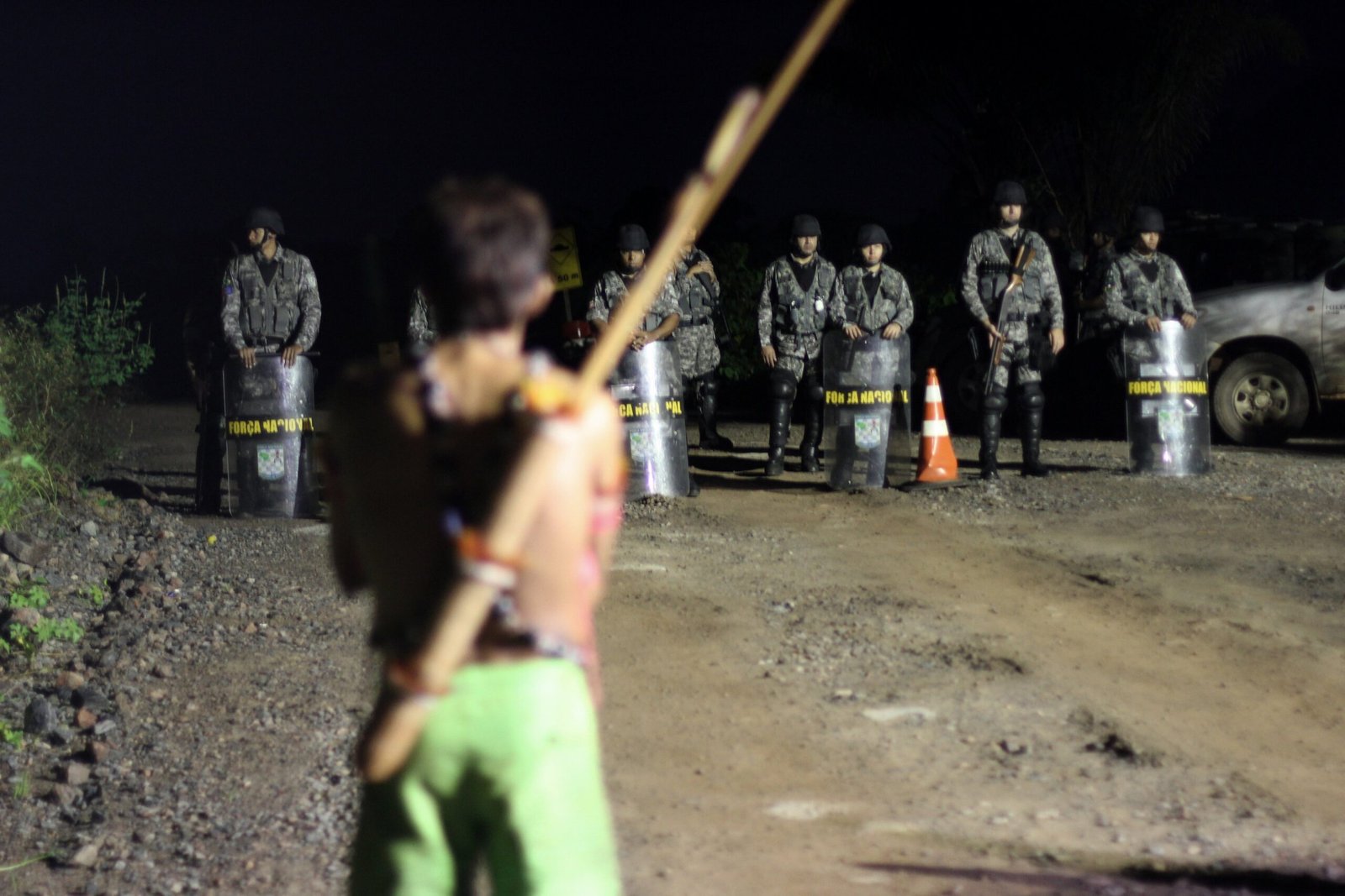 No canteiro ocupado, o clima é tenso entre indígenas e policiais. Segundo relato dos manifestantes, ameaças verbais e intimidação po parte da Força Nacional são constantes no canteiro. Ainda, um jornalista foi ameaçado de prisão e uma documentarista foi expulsa do canteiro por policiais enquanto entrevistava os indígenas. A energia elétrica na área em que os indígenas estão acampados continua cortada.