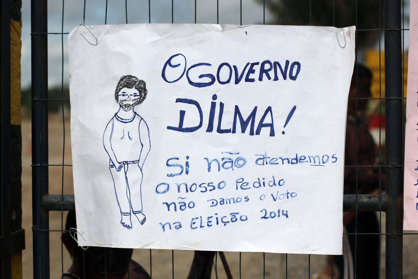 Um oficial da Justiça Federal esteve no canteiro para entregar o documento da reintegração aos manifestantes. A leitura do documento não causou espanto aos indígenas, que rasgaram o documento na frente do oficial, de representantes da Fundação Nacional do Índio (Funai) e de cerca de 40 homens da Polícia Federal, Polícia Rodoviária Federal, Tropa de Choque, Rotam e Polícia Civil. Depois eles dançaram e cantaram.